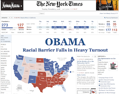Although the first black President of the USA is a huge and meaningful step, welcomed with a surprising dignity by John McCain and George Bush, this is not because of his being black that Barack Obama was elected, which is probably even more meaningful, but because of the precision and the impressive hard work of his campaign, in which every single detail was thought.